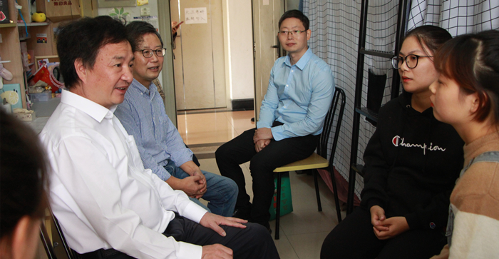 在我校正在开展“不忘初心,牢记使命”主题教育活动之际,10月16日中午,陈寿灿校长来到澳门百家乐论坛 33幢425寝室,走访他联系的朱燕燕同学和他所联系的学生寝室。澳门百家乐论坛 党委书记王华、校办、学办有关人员陪同走访。