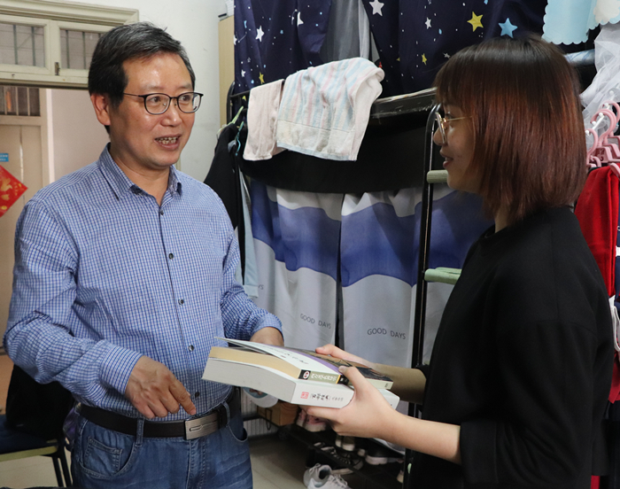 座谈结束,王书记把我校蒋承勇教授的著作《西方文学名著导引》和我校编著的《百部经典名著导读》赠予两个宿舍的同学们。他叮嘱同学们,澳门百家乐 的学生要有人文情怀和人文素养,就要靠平时要多读书,读好书,积累和培养自己的人文素质和人文修养,践行澳门百家乐论坛 “品国学经典,沐人文春风”的理念。