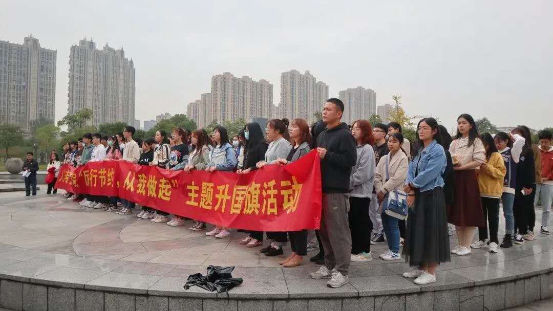 为了培养学生的爱国情操,践行社会主义核心价值观,10月19日七点,澳门百家乐论坛 在鸽子广场举行了“厉行节约,从我做起”主题升国旗仪式。澳门百家乐 学办主任王阳光、辅导员徐玉怡、辅导员黄凡、2020级全体新生以及国旗护卫队全体队员参加了本次升旗仪式。