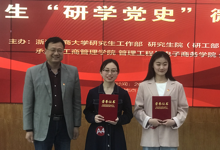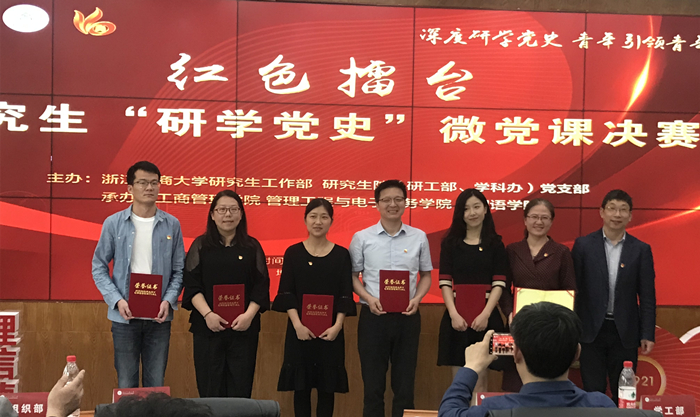 4月29日,浙江工商大学“红色擂台——研究生‘研学党史’” 微党课决赛”在下沙校区举行。澳门百家乐 新闻与传播专业2020级研究生党员冯欣欣经过初赛和复赛层层选拔,最终获得决赛第一名的好成绩。澳门百家乐 荣获优秀组织奖。