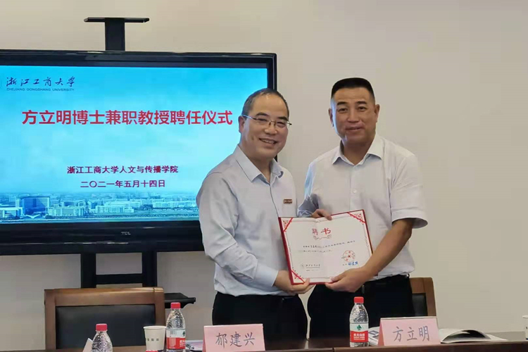郁建兴校长对方立明博士受聘为浙江工商大学兼职教授表示热烈欢迎。他指出,中国正在从工业时代的跟跑者转变为数字时代的领跑者,无远弗届的传播是数字时代的重要特征。数字传播时代的到来,对传统新闻传播造成了巨大的冲击,同时也给新闻传播学科的跨越发展提供了巨大的战略机遇。他强调,浙江工商大学的新闻传播学科,一定要牢牢把握这样的战略机遇,千方百计地把学科做大做强,重中之重就是加强高层次人才队伍的建设,既要加大专任教师引进和培育力度,也要注重通过柔性引进的方式加强兼职专家队伍建设。
