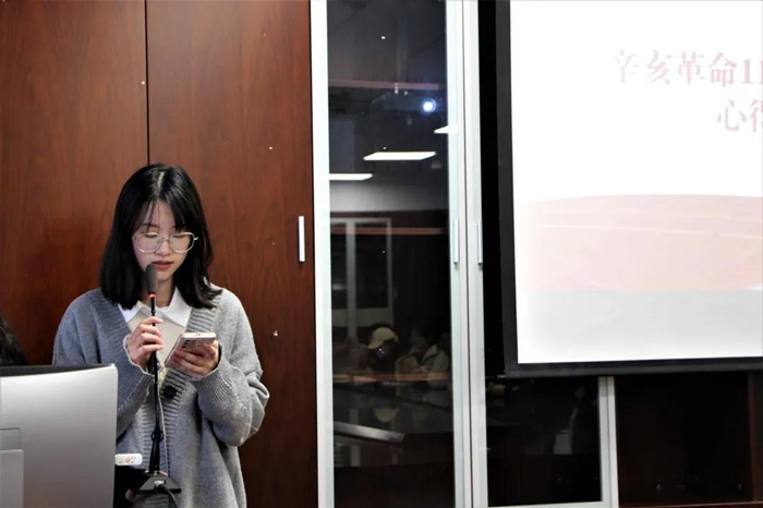 学习伊始,同学们观看了有关纪念辛亥革命110周年的视频,画面伴着音频,纪念的声音流入心底,令人心潮起伏。随后,开展了“习总书记金句分享”活动,由同学们选取习近平总书记在“纪念辛亥革命110周年大会”上的讲话内容中的句子,带领大家共同朗诵。句句箴言,令人心生感动和震撼;字字铿锵,唤醒以往岁月峥嵘,怀念先辈,抚今追昔。最后,分享心得体会。同学们在听完习总书记“纪念辛亥革命110周年大会”上的讲话后,心有感慨,在会议上,大家互相分享了自己的心得体会,彼此共同学习,深入思考,互相进步。