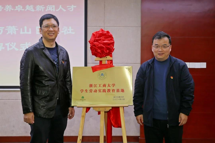 图为浙江工商大学与萧山日报社基地揭牌仪式现场