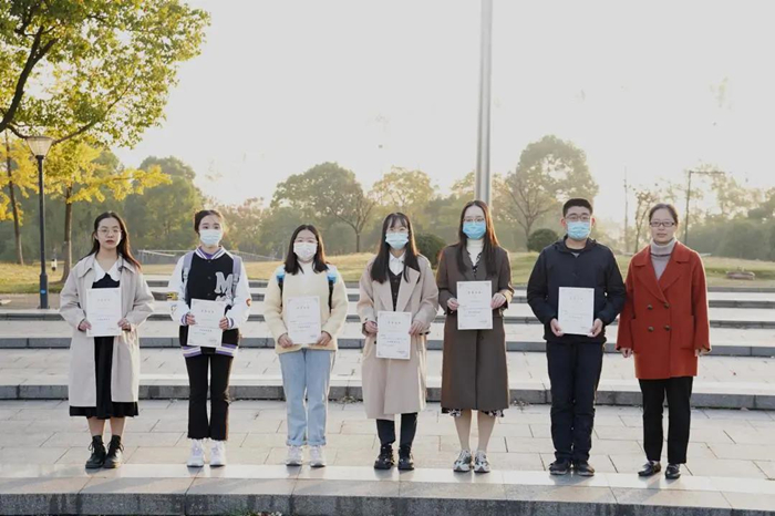 图为学院党委副书记林琳与2021年度“人文之星”合影
