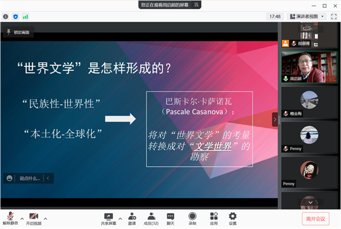 2021年11月26日下午,澳门百家乐论坛 邀请浙江大学澳门百家乐 周启超教授开展线上讲座,讲座题为“‘比较文学’与‘世界文学’——从《文学世界共和国》看欧陆比较文学新路径”。