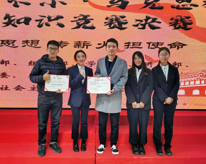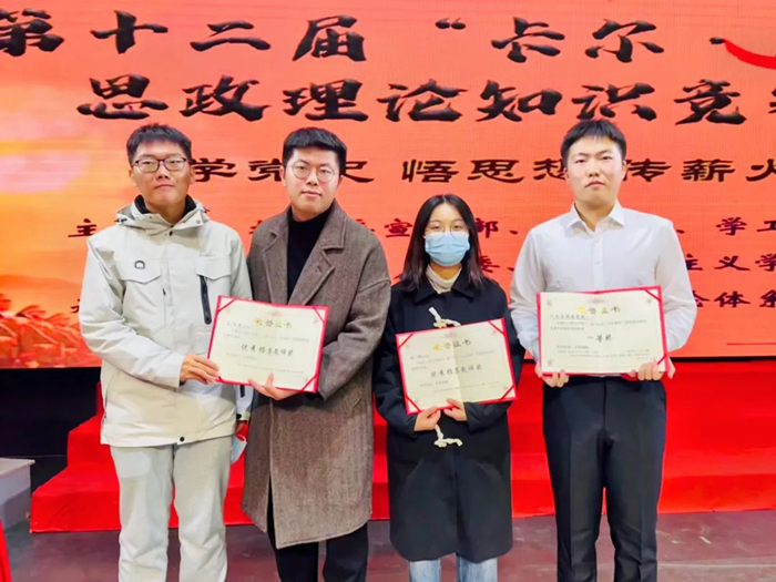 为庆祝中国共产党成立100周年,深入贯彻学习习近平总书记在党史学习教育动员大会上的重要讲话精神、党的十九届六中全会精神,我校于11月27日在学生活动中心剧院举行第十二届“卡尔·马克思杯”思政理论知识竞赛决赛。