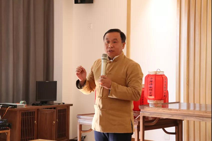 图为唱道文化教育集团董事长、中华诗教研究院院长胡维瑾致辞