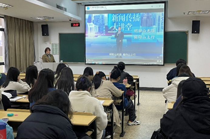 在中央广播电视总台四川总站记者朱兴建的讲座中,他围绕“悬崖村是怎样被发现的”、“明知山无路,偏向山上行”以及“践行‘四力’永远在路上”三个部分讲述他们对悬崖村的新闻报道故事。通过观看他们的讲座,同学们领会了新闻记者报道中调查的重要性、媒体的责任以及如何正确处理新闻作品中的苦难问题。