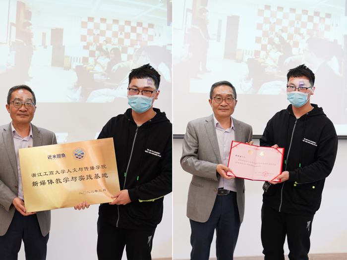 聘任和颁奖仪式环节,澳门百家乐论坛 何庆机院长向浙江近水思鱼电子商务有限公司颁发实务精英聘书,并向该公司授予共建基地牌子。