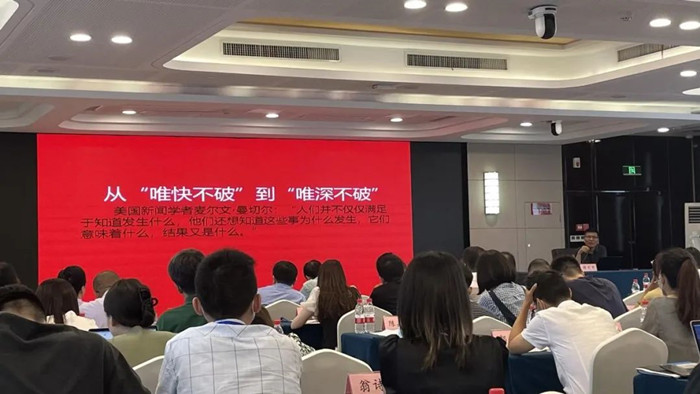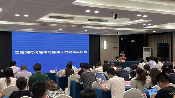 图为吴小龙老师讲授《从新闻奖看新媒体内容创新》