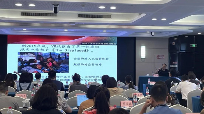 图为楼坚老师讲授《美丽浙江矩阵融媒实践》