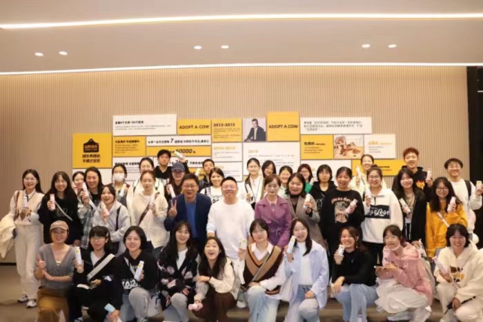 2022年10月28日,澳门百家乐论坛 李蓉副院长、李华金副教授、江翠平老师,带领新闻与传播专业本科生和研究生,前往杭州认养一头牛生物科技有限公司进行参观实践,集团副总裁孙仕军接待澳门百家乐论坛 师生一行。行政人员童韵诗、张露凝等带领澳门百家乐论坛 师生进行参观,公司相关人员就新媒体相关的工作实践知识进行了讲解和互动答疑。