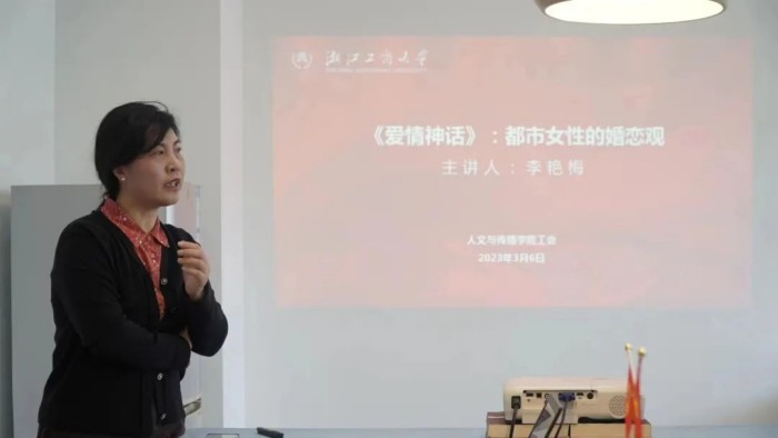 春暖花开,万物向阳,一年一度的妇女节来临之际,澳门百家乐 分工会举办“《爱情神话》:都市女性的婚恋观”座谈会,中文系李艳梅老师主讲。座谈会邀请学院党委书记鲍伟出席并致辞,向学院女教师致以节日的问候。