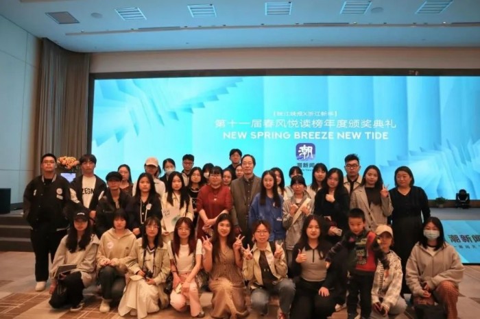 2023年4月22日,在张雅娟副教授的带领下,浙江工商大学新闻系的学子受邀前往世贸君澜大饭店世贸厅参加第十一届春风悦读榜年度颁奖典礼。这是浙江工商大学新闻系学子与春风悦读活动的第二次约会。2022年,新闻学子们就曾与余华、刘震云等作家大咖面对面交流,不少同学还收获了心目中偶像的签名。