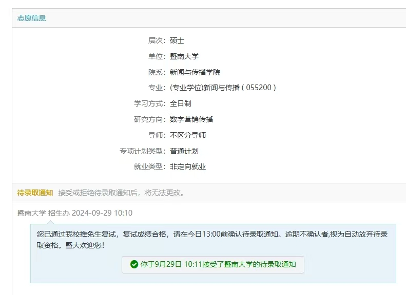 保研过程中,信息差是关键因素。俞思婷将信息来源分为两类。一类是固有信息,像各类公众号上可查的公开信息,尤其是与本专业相关的宣传领域公众号,会及时发布保研资讯并进行详细汇总;另一类是随机信息,例如社交平台上的博主分享的一些有关保研的小道消息或个人经验等内容。在每年八九月份时,去年保研成功的学生们会分享宝贵经验,可供咨询参考。同时,同届保研同学提出的共性问题及帖子留言,也能帮助她解决不少疑惑。此外,她还提到认识学长学姐除了通过社团,还可关注校园墙上发布的组队招募信息。