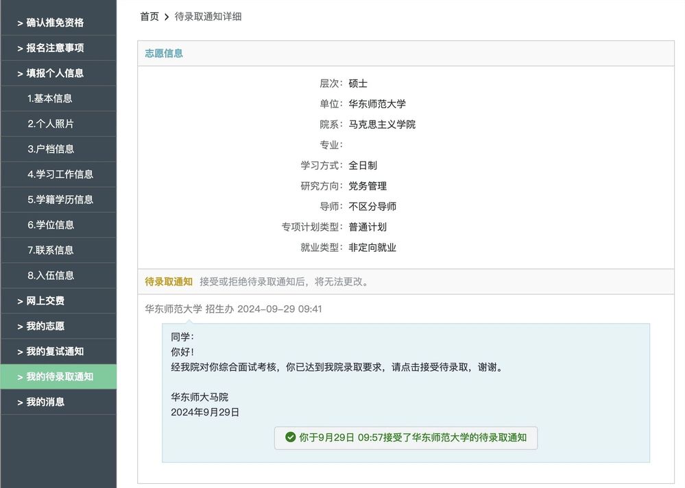 “保研从最初准备到最后确定这一阶段,于我而言,最具挑战性的是预推免阶段。”方一柳学姐坦诚地分享道。作为高校集中发布通知的关键时期,预推免阶段无疑是一场对时间管理和决策能力的严峻考验。她表示,这个阶段的关键点在于必须在有限时间内完成一系列繁琐而重要的任务。